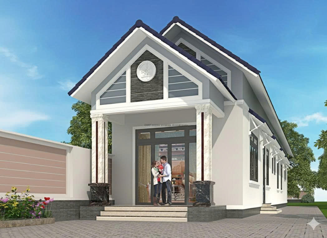 - Diện tích vừa: Thiết kế nhà 1 mái với đầy đủ tiện nghi, phù hợp với gia đình nhỏ.