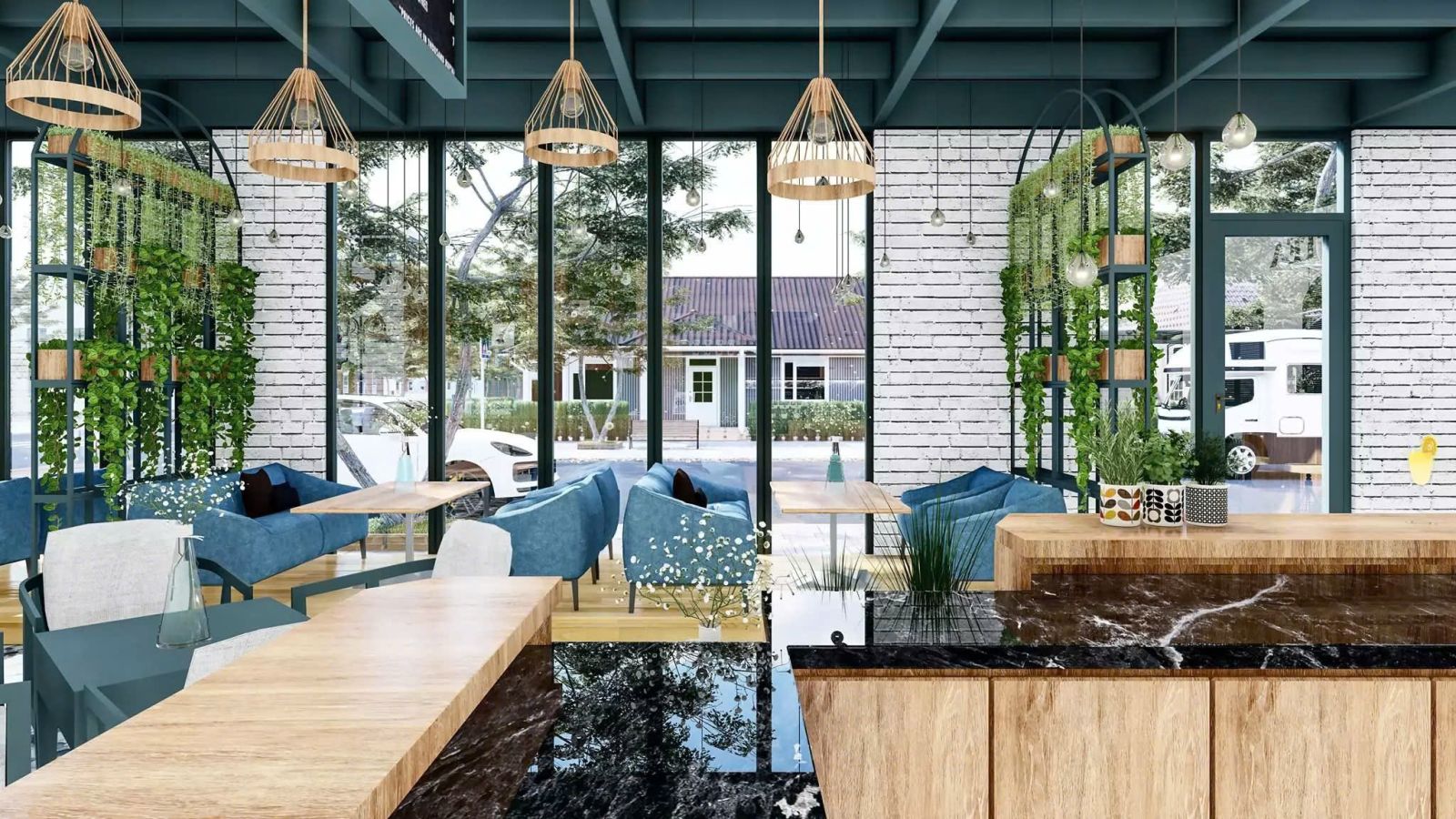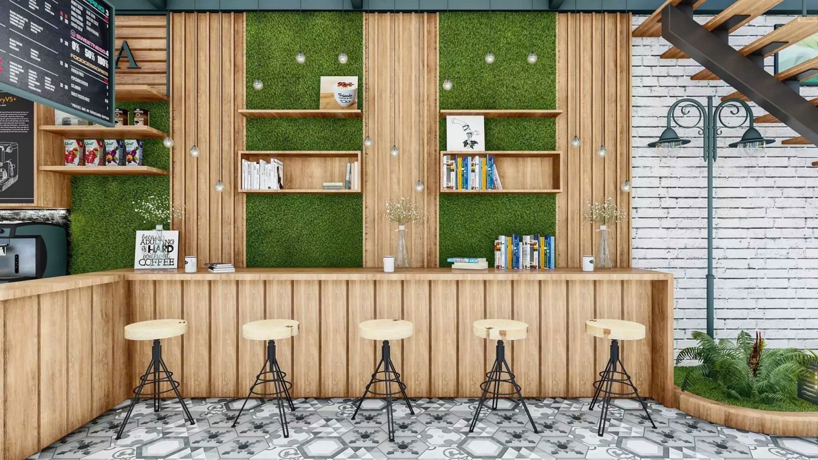 - Cây xanh: Đặt cây xanh trong quán để tạo không gian tươi mát.