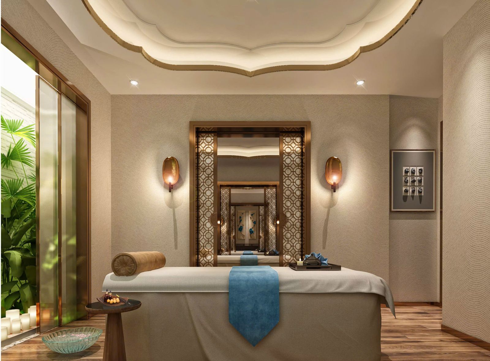 - Phòng trị liệu: Nên trang trí đơn giản, nhẹ nhàng để tạo cảm giác thư giãn, thoải mái cho khách hàng. Có thể sử dụng nến thơm, cây xanh, đèn ngủ.