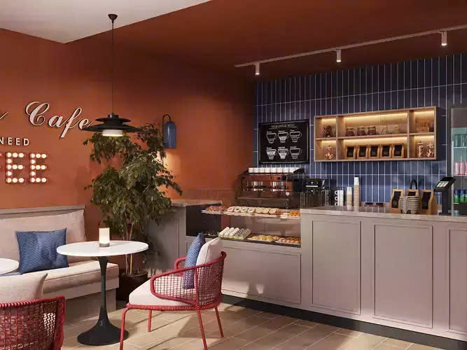 Để gợi ý thiết kế quán cafe nhỏ đẹp sử dụng cam và xanh thêm phần sáng tạo, bạn có thể tham khảo các phong cách sau: