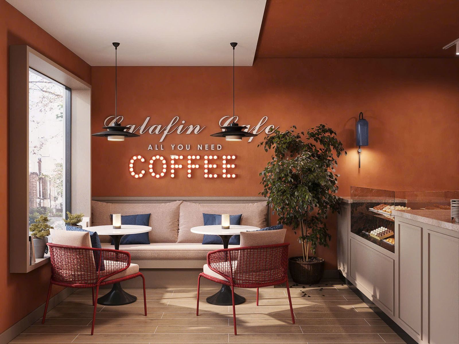 Gợi ý thiết kế quán cafe nhỏ đẹp, phối màu cam xanh tinh tế
