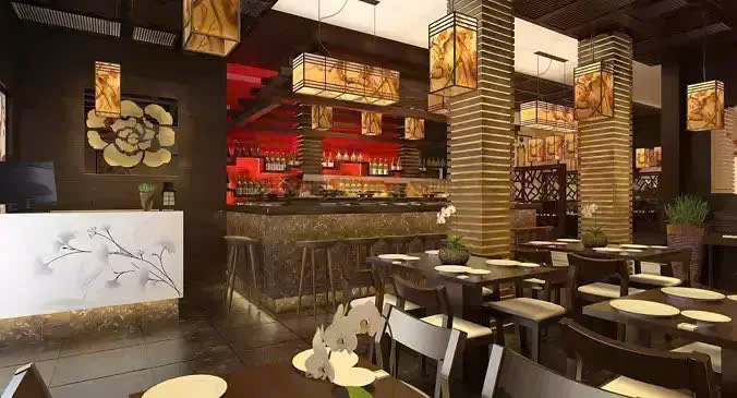 Ánh sáng là một yếu tố không thể thiếu trong bất kỳ không gian thiết kế nào, và đặc biệt quan trọng trong thiết kế quán ăn phong cách Nhật. Thay vì sử dụng ánh sáng trắng mạnh, các quán ăn kiểu Nhật thường sử dụng ánh sáng vàng dịu nhẹ, tạo cảm giác ấm cúng và thư giãn. Ánh sáng có thể được tạo ra từ đèn lồng, đèn âm trần, đèn bàn… và được bố trí một cách khéo léo để làm nổi bật các chi tiết trang trí và tạo điểm nhấn cho không gian.