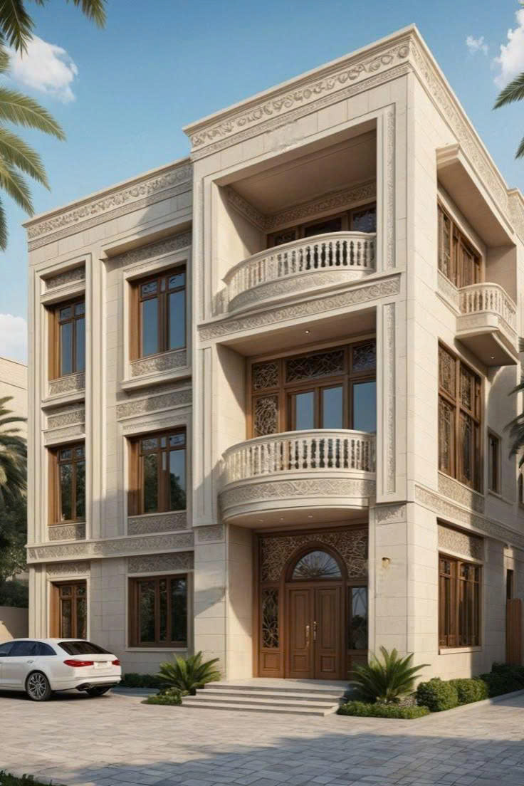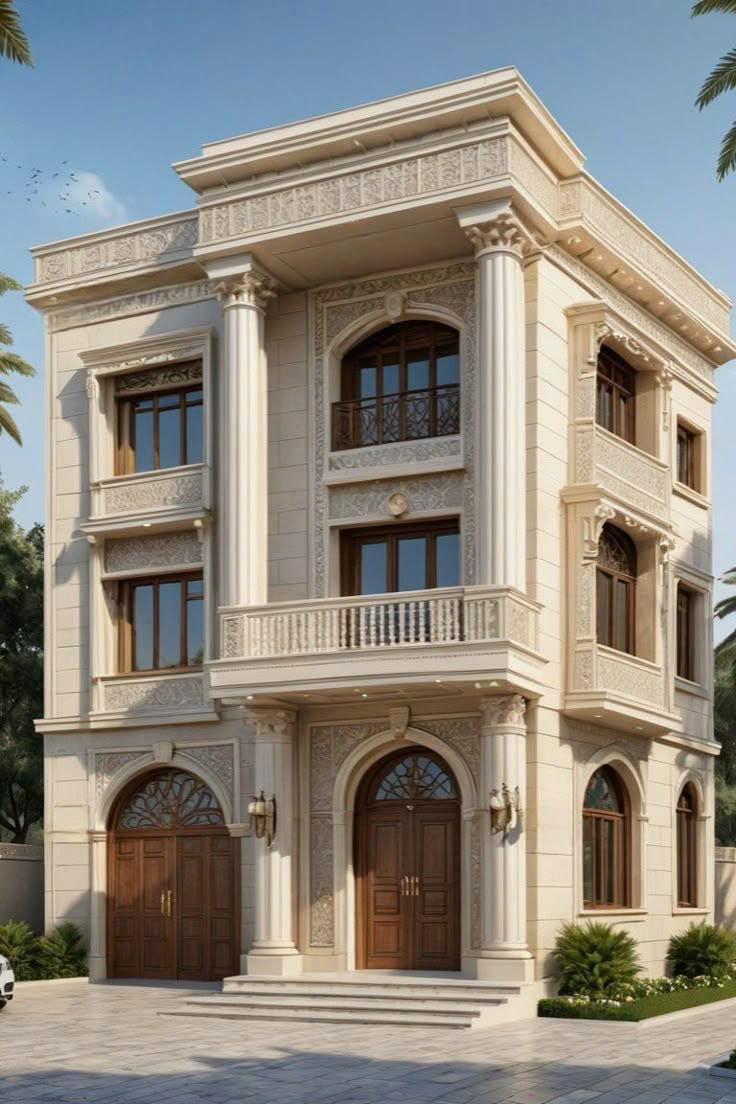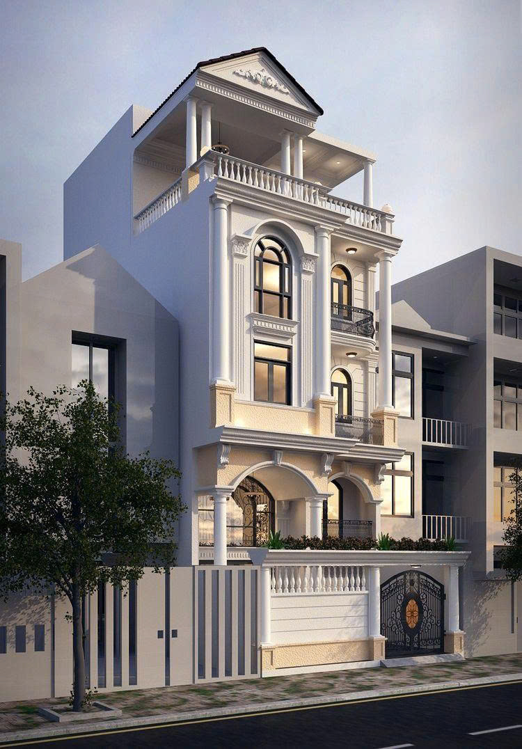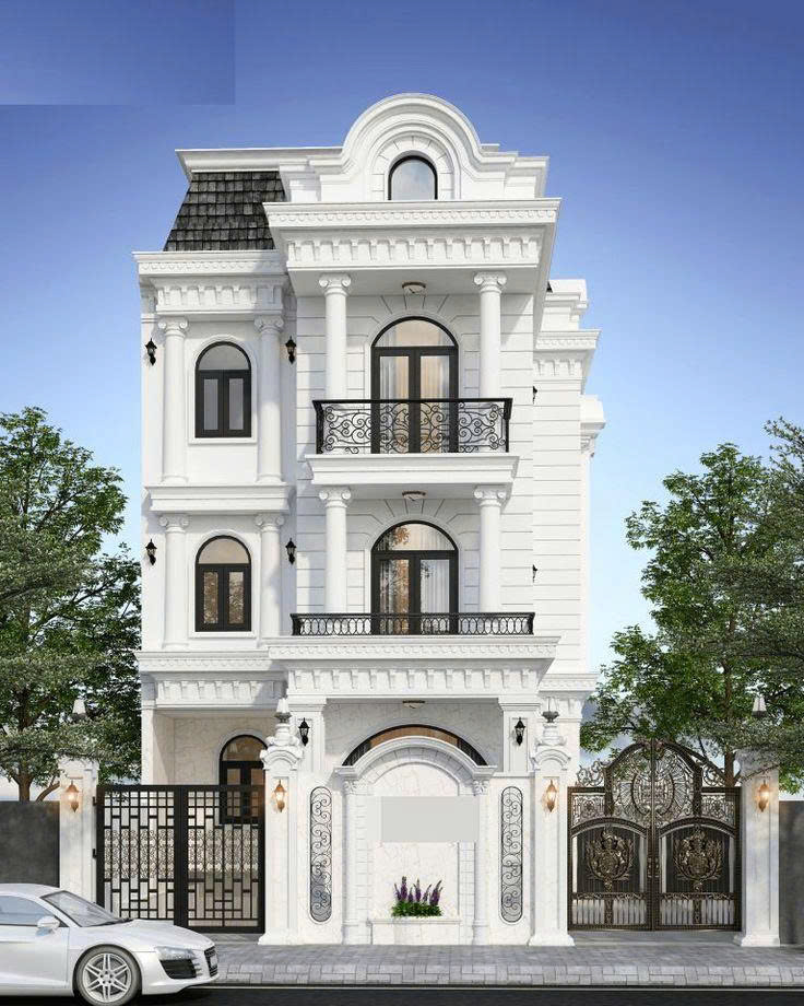 Việc xử lý hình khối mặt tiền 4 tầng cần sự tinh tế để tạo nên sự khác biệt và chiều sâu: