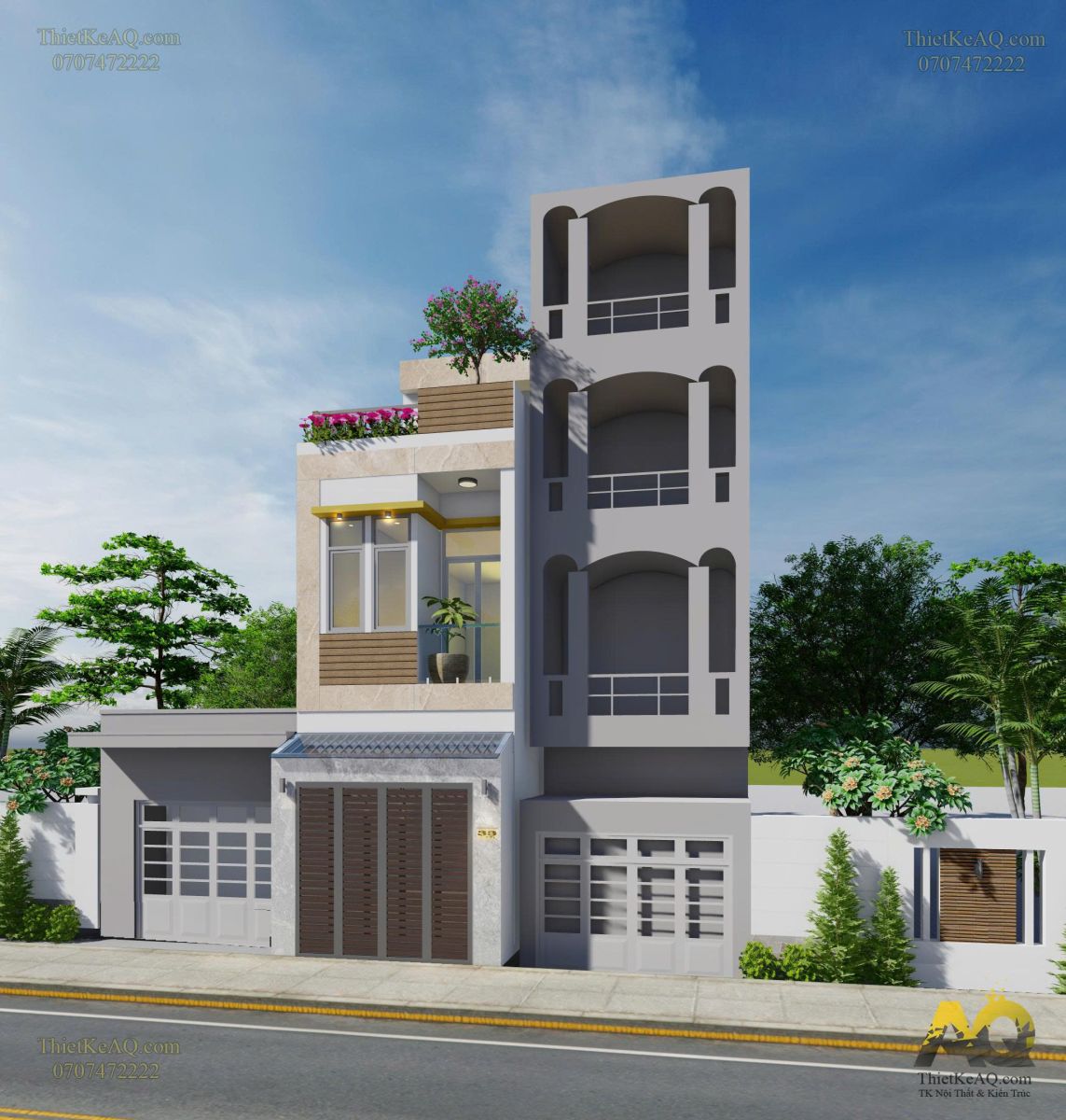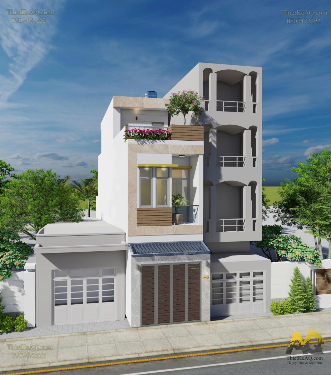 (chèn ảnh minh họa: Bản vẽ 3D mặt tiền nhà phố 2 tầng 1 tum hiện đại tại Gò Vấp)