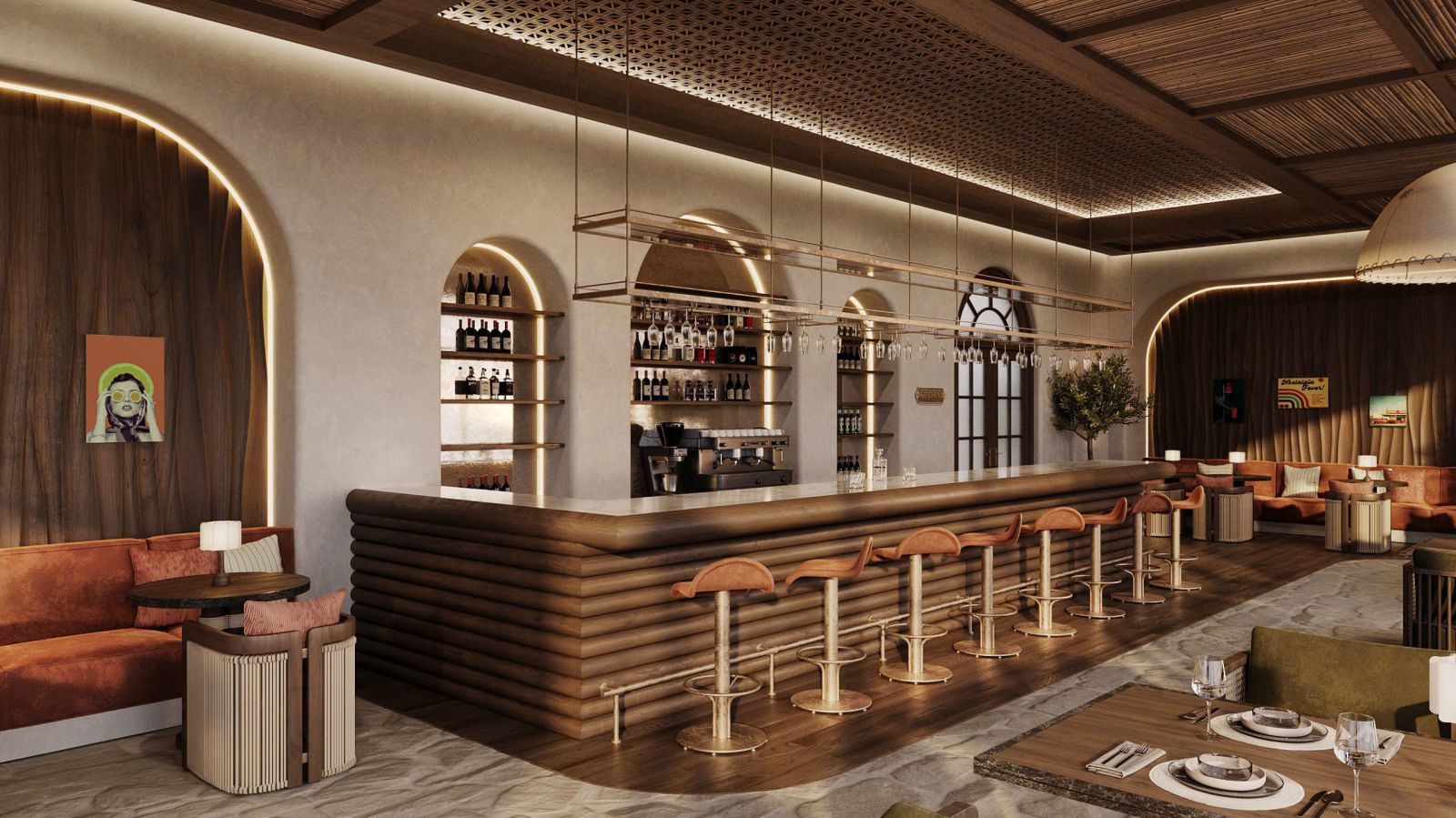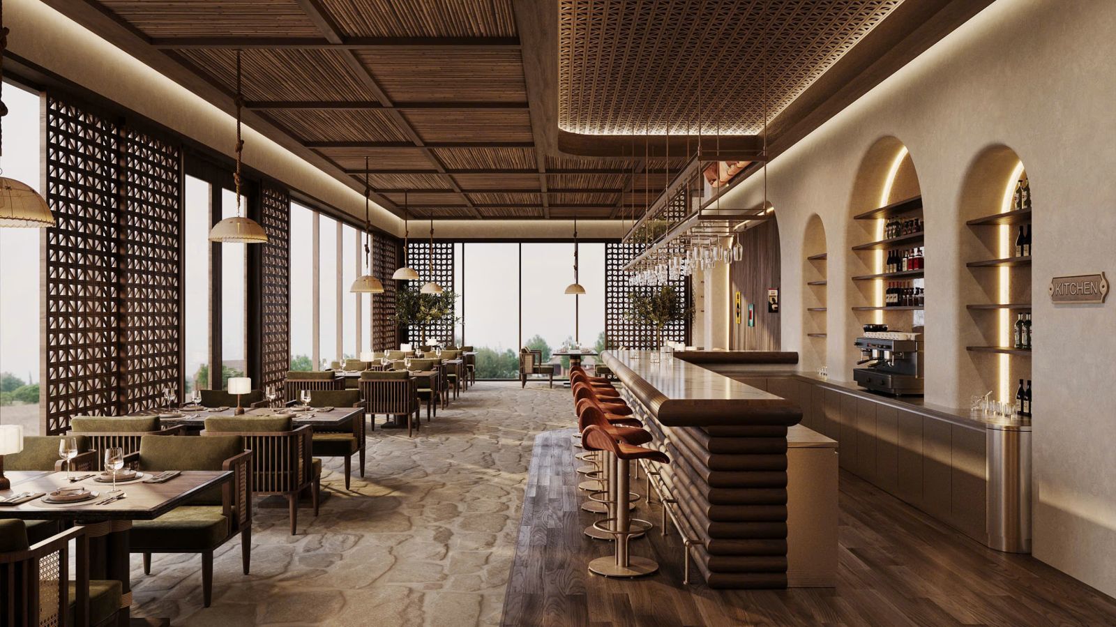 - Phòng bếp: Tủ bếp gỗ, bàn ăn gỗ, ghế bar gỗ